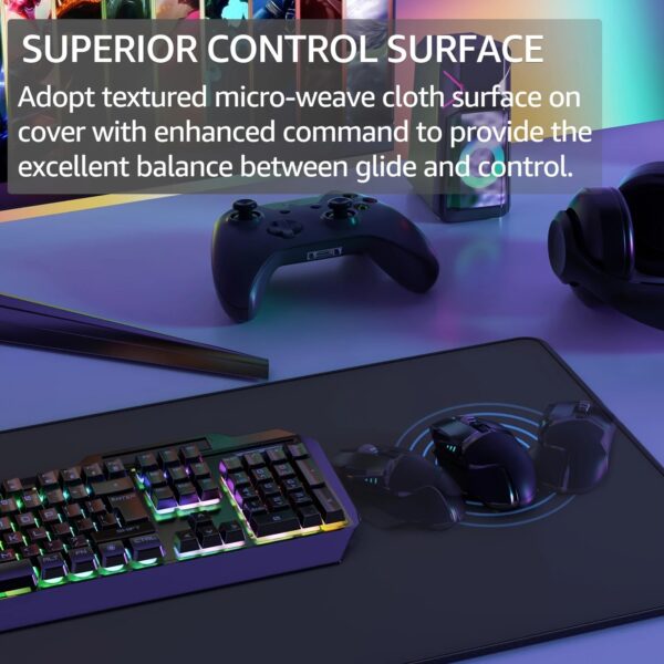 Förbättra din gaming- och arbetsyta med denna extra stora musmatta för skrivbord. Den utökade designen ger gott om plats för både mus och tangentbord, samtidigt som den stabila konstruktionen ger jämn precision och långvarig komfort vid både spel och arbete.