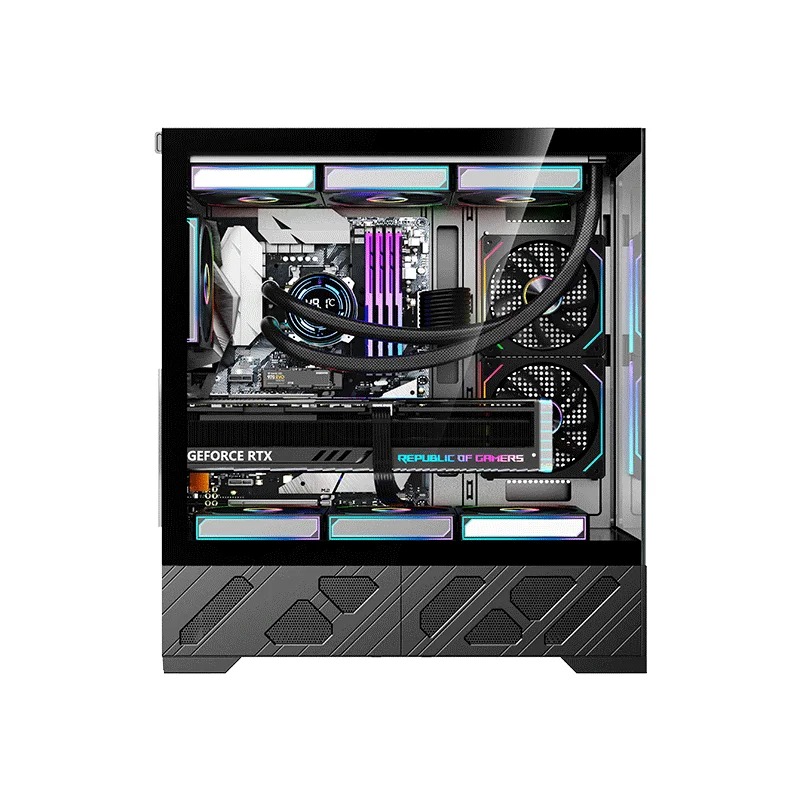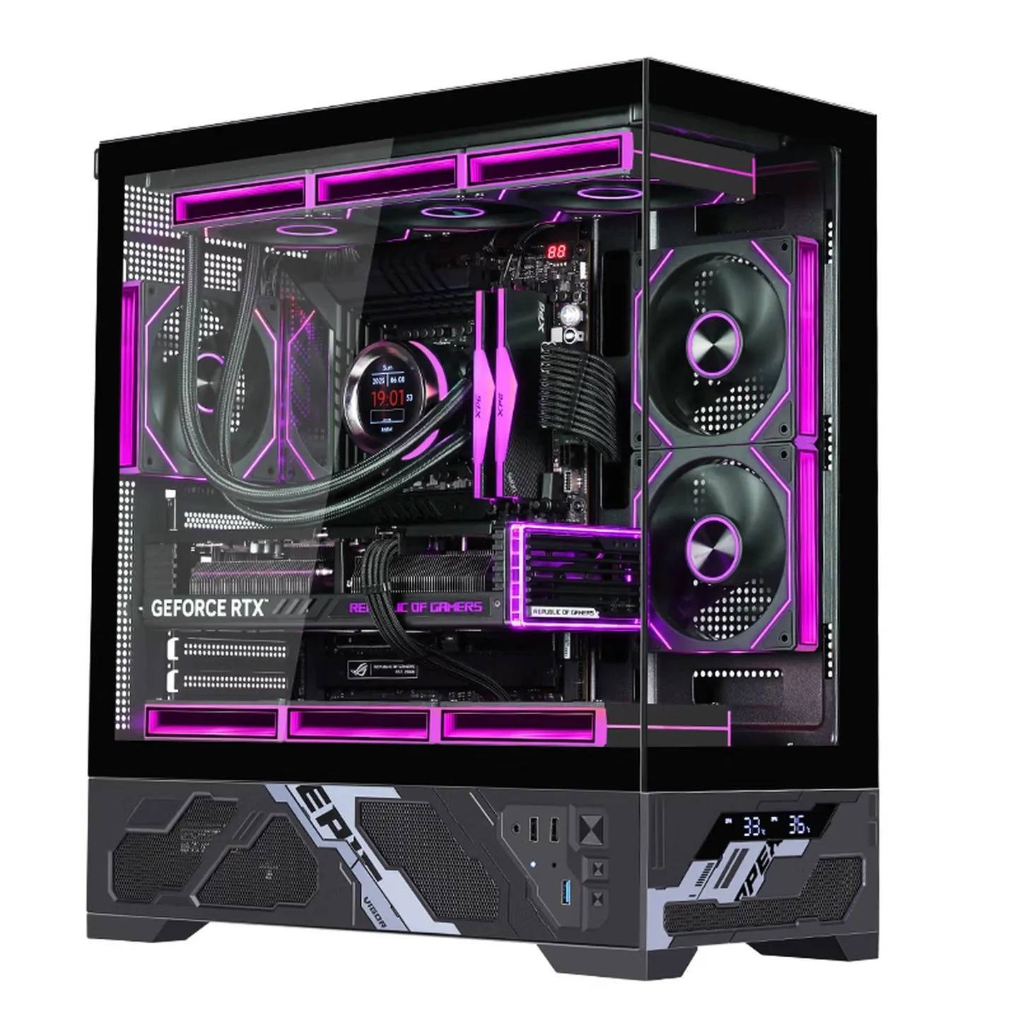 Detta chassi är utvecklat för användare som vill visa upp sitt bygge utan att kompromissa med kylprestanda. Den panoramiska layouten ger fri sikt över komponenterna, medan stödet för stora radiatorer säkerställer stabil temperatur även vid hög belastning. Den digitala displayen ger snabb överblick över systemstatus och bidrar till en futuristisk känsla.